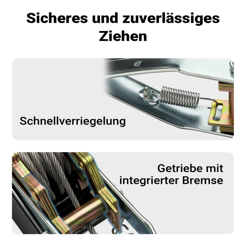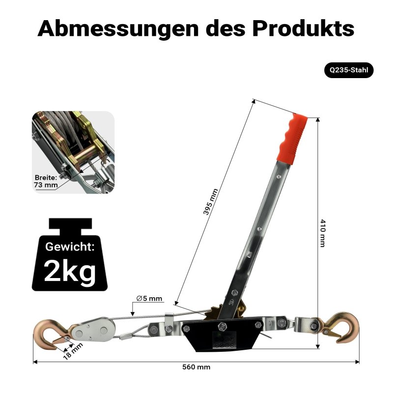 Ob in der Werkstatt, auf Baustellen oder in anderen industriellen Umgebungen - diese Handseilwinde ist ein unverzichtbares Werkzeug für das Ziehen schwerer Lasten. Die kompakte Bauweise und die hohe Traglast machen den Handseilzug zu einer praktischen Lösung für eine Vielzahl von Anwendungen. Sie können diesen Seilzug zum Beispiel zum Versetzen gefällter Bäume, zum Abschleppen von Fahrzeugen, zum Ziehen von Booten oder zum Versetzten von Lasten bestens einsetzen.