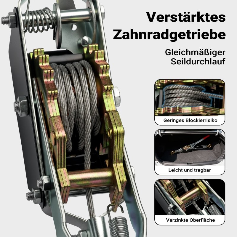 Handseilzug mit 1,8m Drahtseil, Flaschenzug, 2 Haken, Sicherheitslasthaken, 1000kg - 4000kg