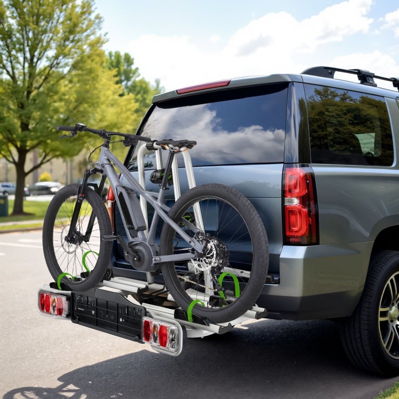 Der Fahrradträger besticht durch sein faltbares Design, das eine einfache Lagerung ermöglicht, wenn der Träger nicht in Gebrauch ist. Zudem kann der Heckträger nach unten gekippt werden, wodurch das Be- und Entladen der Fahrräder erleichtert wird. Diese Funktion ist besonders praktisch, wenn die Fahrräder häufig montiert und demontiert werden müssen, wie z. B. bei kurzen Ausflügen oder Campingtrips.