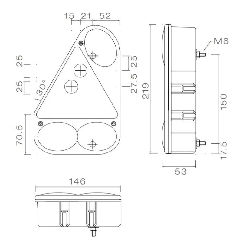 ASPÖCK Earpoint III Rückleuchte rechts, mit Blink-, Brems-, Schluss- und Rückfahrlicht, Dreieckrückstrahler, 5-poliger Bajonettanschluss, Leuchtmittel H: 219 x B: 146 x T: 53 mm
